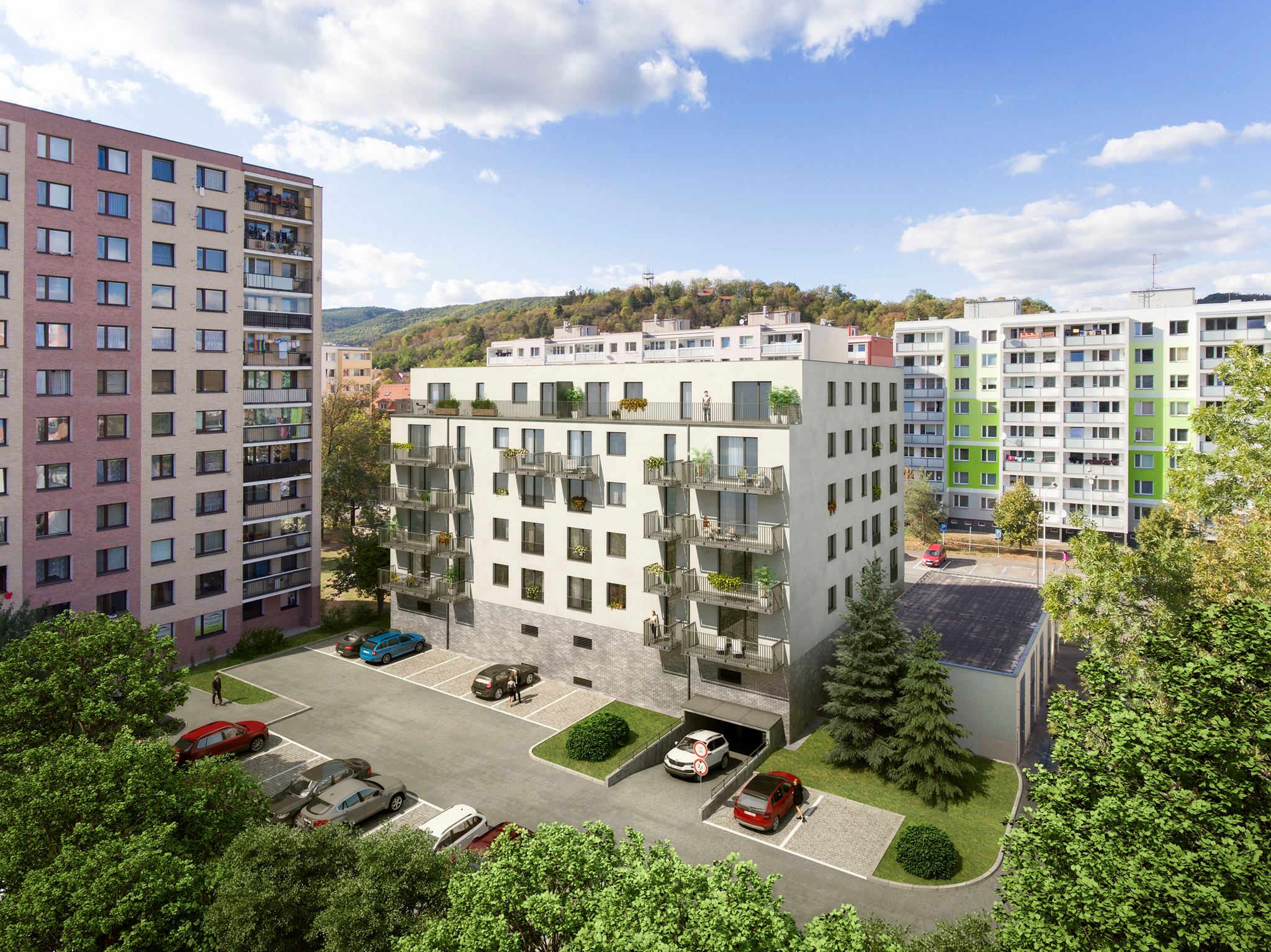 Projekt vyniká kvalitou lokality, standardem stavby, podzemním parkováním a také pěší dostupnosti do centra.