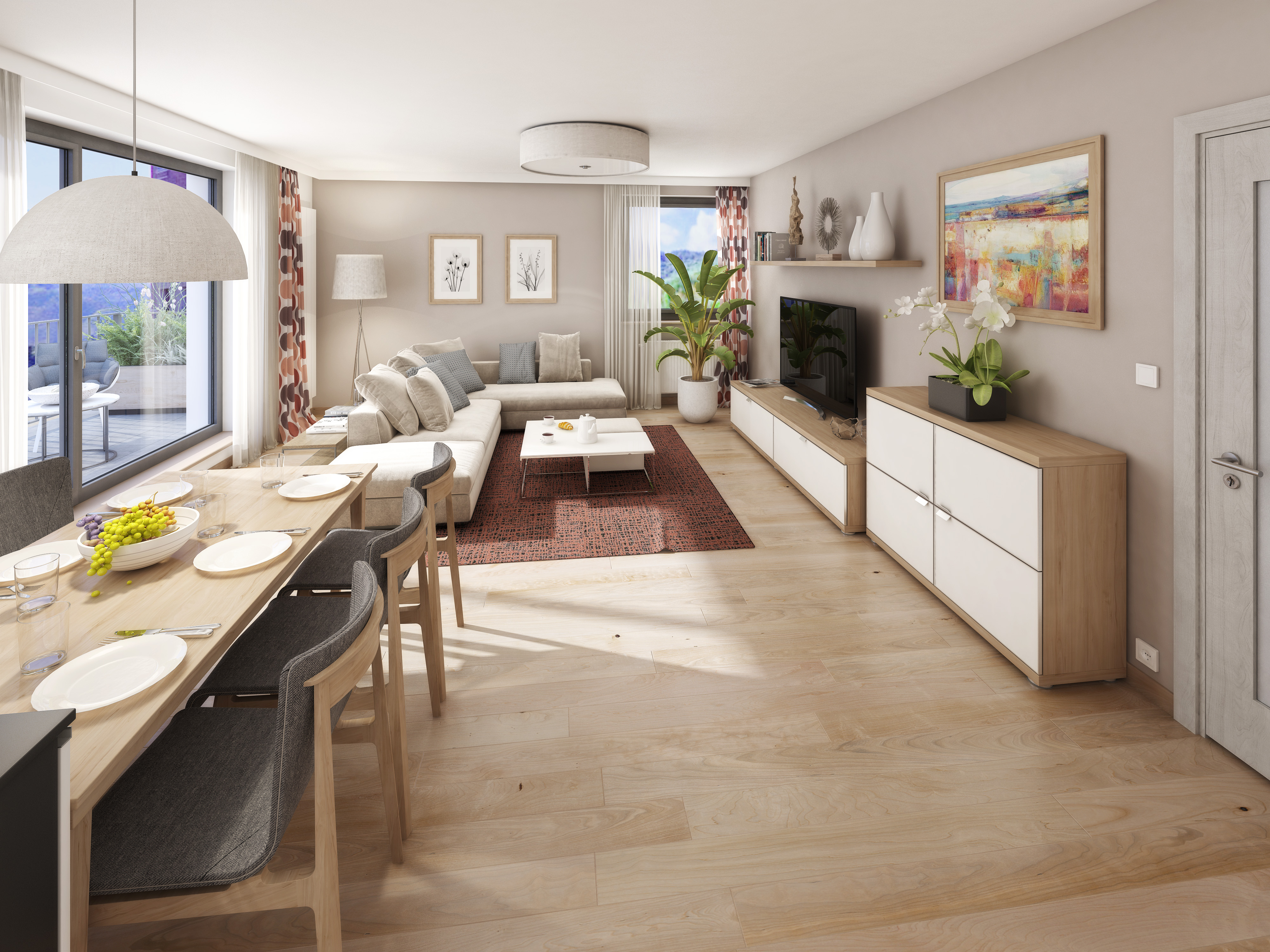 Dispozice bytů splní veškeré nároky na komfortní městské bydlení. Byty mají promyšlené dispoziční řešení, jsou velmi světlé a provedené v kvalitním standardu. Byty jsou k prodeji v dokončeném stavu. Ten bude zahrnovat vybavení od značek CONCEPT, bezpečnostní vstupní dveře. Koupelny bude zdobit velkoformátová dlažba značky RAKO. Součástí všech bytů jsou francouzská okna s trojsklem.