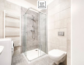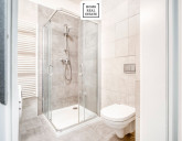 Standardy: Zaměření na vysokou kvalitu je patrné například v koupelnách s obložením z velkoformátových dlaždic Graniti Fiandre a sanitárním vybavením od prémiových značek GROHE a Villeroy & Boch. Všechny byty jsou rovněž vybaveny dřevěnými francouzskými okny. Inovativní systém podlahového vytápění s nezávislou regulací teploty v každé místnosti zajišťuje komfort i během chladných dnů a umožňuje absenci radiátorů na zdech, čímž se zvyšuje celková estetičnost a variabilita prostoru bytů. Luxusní vinylové EKO-podlahy v obytných místnostech jsou nejen moderní, ale díky své zvýšené odolnosti i velmi praktické. Stavba projektu byla provedena ve vysokém standardu: luxusní dřevěné podlahy Vinyl Winflex od Floor Experts, interiérové dveře Vetos, v koupelně stylové keramické dlažby Graniti Fiandre Core Shade, závěsné WC a umyvadlo od Villeroy & Boch.
