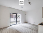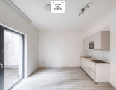 Dispozice jednotky tvoří: - vstupní chodba - koupelna se sprchovým koutem a WC - prostorný obývací pokoj s kuchyňským koutem (včetně kuchyňské linky a spotřebičů) - terasa 12,6 m² - sklep 1,68 m²
