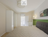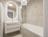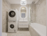 - koupelny, která nabízí krásnou vanu se sprchovým setem, umyvadlo se skříňkou, zrcadlo s LED osvětlením, další WC a pračku se sušičkou,