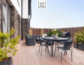 Tento rodinný dům o dispozici 4+KK se nachází na pozemku o celkové výměře 201 m² a zahrnuje dvě parkovací stání před domem, zahrádku o velikosti přibližně 20 m² a terasu o rozloze cca 50 m².